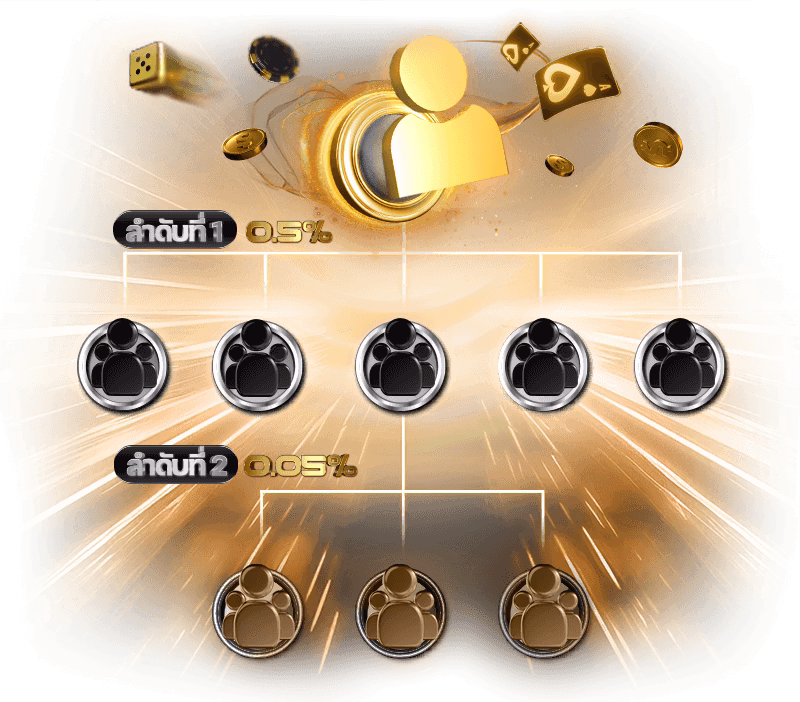 เครือข่ายขั้นที่ 2 รับส่วนแบ่งจากยอดเล่นของเพื่อนคุณที่วางเดิมพันทุกยอดเล่น 0.05%